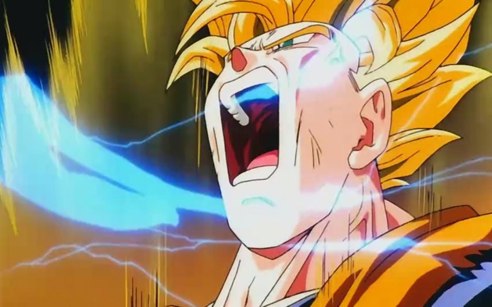 Goku Powering Up. HAAAAAAAAAAAAAAAAAAAAAAAAAAAAA! [flies up and fires Kamehameha at the same. Krillin is the true hero of DBZ, he's short, bald, weak ass human.